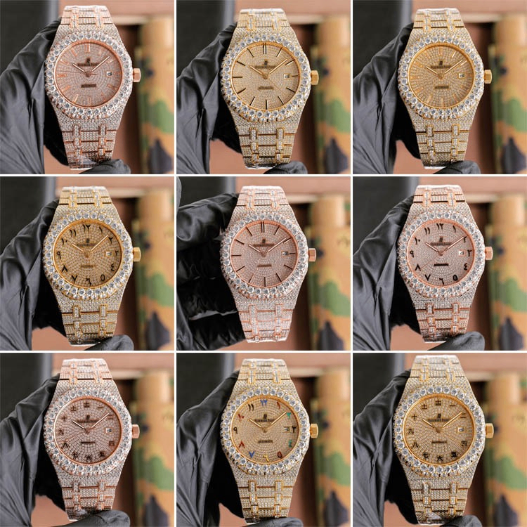 Designed by Gérald Genta in 1972, the Audemars Piguet Royal Oak broke the boundary between dress and sport watches, and the diamond-set edition inherits this avant-garde spirit while adding unparalleled luxury. The watch’s most distinctive feature is its octagonal bezel, secured by eight hexagonal screws—a design echoing the Royal Oak warship’s porthole, symbolizing strength and resilience. Crafted from 18K white gold or stainless steel, the case undergoes meticulous polishing and satin brushing, creating a refined contrast with the sparkling diamonds.