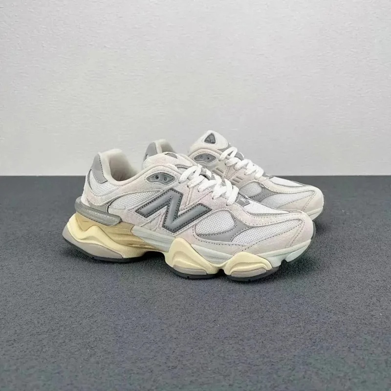 Debuting in 2022, the New Balance 9060 wear-resistant low-top running shoes redefine retro-futuristic sportswear with a perfect balance of durability and style. Crafted from a wear-resistant blend of premium suede overlays and breathable mesh underlays, the upper stands up to daily wear while ensuring ventilation. Its dramatic silhouette features elongated reflective "N" logos, wavy textured midsoles, and split heel details, blending heritage 900-series DNA with Y2K aesthetics, available in versatile colorways like cream-brown, cement gray, and deep brown.