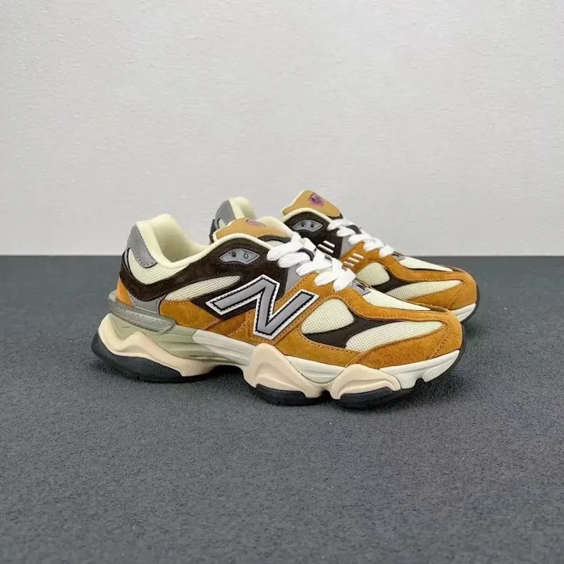 Debuting in 2022, the New Balance 9060 wear-resistant low-top running shoes redefine retro-futuristic sportswear with a perfect balance of durability and style. Crafted from a wear-resistant blend of premium suede overlays and breathable mesh underlays, the upper stands up to daily wear while ensuring ventilation. Its dramatic silhouette features elongated reflective "N" logos, wavy textured midsoles, and split heel details, blending heritage 900-series DNA with Y2K aesthetics, available in versatile colorways like cream-brown, cement gray, and deep brown.